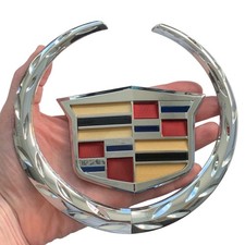 This front grille emblem is made for Cadillac models listed below and installs directly into the grille opening. Cadillac Escalade. The emblem is made from composite material and holds its shape and finish under normal driving conditions.