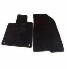 Made of black carpet material, these floor mats are specifically designed for the front of the vehicle.