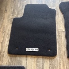 Infiniti QX80 OEM Carpet Floor Mats Full Set 4pcs Black Clean Used. Condition is Used. Shipped with USPS Ground Advantage.