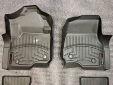 Used set of WeatherTech All-Weather Floor Mats Liner for Ford F-150, 1st and 2nd Row - Color Black. Only fits Crew Cab (Super Crew) models. Set: 1st & 2nd Row. Only fits models with 1st Row Bucket Seating.