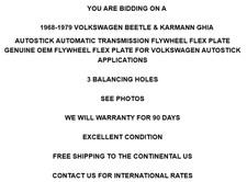 AUTOSTICK AUTOMATIC TRANSMISSION FLYWHEEL FLEX PLATE. GENUINE OEM FLYWHEEL FLEX PLATE FOR VOLKSWAGEN AUTOSTICK APPLICATIONS. 1968-1979 VOLKSWAGEN BEETLE & KARMANN GHIA. EXCELLENT CONDITION. SEE PHOTOS.