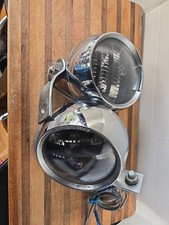 Perfectly working (very bright) and great looking pair of perlux 36a off road or service lights. With very nice factory mounts. Chrome is very good, and no rust that I can see anywhere. BLUE WIRES ARE HOT. THEY ARE THE LARGER ONES. thanks for looking.