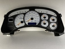 (Genuine GM complete gauge cluster with White LED backlighting. 3) Gauge motors tested and replaced as needed. 5) White LED backlighting installed.