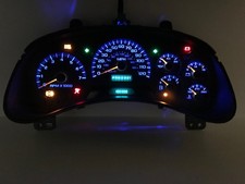Fully rebuilt 02-05 Chevy Trailblazer gauge cluster assembly with blue LED illumination. -All new Blue LED night illumination in stalled. - Front clear cover cleaned.