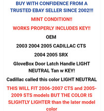 GloveBox Door Latch Handle LIGHT NEUTRAL Tan w KEY! 2004 2005 SRX. 2003 2004 2005 CADILLAC CTS. THIS WILL FIT 2006-2007 CTS and 2005-2009 STS models BUT THE COLOR IS SLIGHTLY LIGHTER than the later model color.