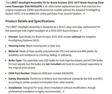 $149.99 View DetailsProduct Type: Passenger Side Headlight Assembly. Bulb Type: Halogen. Assembly Type: Headlight Assembly. You may need to recover them from your existing light assembly. Our UV Coating protects the lens from premature yellowing and discoloration.