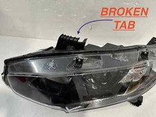 Hyundai Tucson. Right (passenger) side headlight used, side tab has a crack. needs to be repaired.