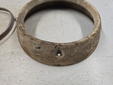 1951 Ford passenger car headlight bezel. Includes the headlight retaining ring. It is in pretty good shape. The retainer ring will need cleaned up and polished.