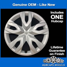 Hubcap for Toyota C-HR 2018-2021 Genuine OEM Factory 17-inch Wheel Cover Silver 61199Price is for ONE hubcap. This is a factory-original Toyota 17-inch hubcap that has been professionally cleaned and refinished to look very close to new; at a big savings over dealer price! The quality of materials that make this hubcap is superior to cheaper alternatives; which means it should last the life of the vehicle.This a genuine OEM wheel cover that originally came on Toyota C-HR vehicles with the factory steel wheel.We have a professional cleaning process and commercial paint booth to give a quality finish as good or better than the original factory baked-on paint.