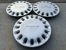 PLEASE REVIEW ALL PHOTOS AND THE DETAILED DESCRIPTION PRIOR TO PURCHASE. This is a used part. Normal age related fading, scratches and other imperfections are present unless otherwise noted. More details and specifics are detailed below. Three ford Taurus hubcaps for 14” steel wheels original to 1992-1995 model year cars All 3 are in good condition each has some various marks, scratches and curb rash around the perimeter all have been repainted and look good All clips and wires are intact Please review all photos