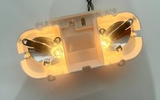 Genuine Toyota interior roof lamp. Light gray housing with clear textured lens. Dual map lights withOFF / door / ON slider switch. Used, in good working condition. See all photos for exact item and condition – you will receive the lamp shown.