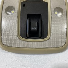 The product is a genuine OEM BMW front center overhead dome reading lamp light and sunroof switch for the E82 and E92 models. It features a gray color and comes with interchange part numbers 6932827, 6 932 827, 61 31 9 209 579, 9 209 518, 61 31 9 180 051, 6131 9209579, 9209518, 6131 9180051. The manufacturer part numbers are 61319180051 and 61319209579. This lamp and switch assembly is designed to be placed in the front center overhead area of the vehicle, providing both lighting and control for the sunroof.