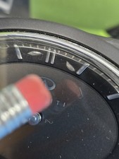 Clock has 2 scratches on top that can be seen. Illustrated with the pencil selling as is clock is in great working order. Light does not flicker. i check both buttons forward and back. The clock moves flawlessly, with no issues. If your clock has no scratches on the lens, you can easily swap it. And put it on this one. I am selling this as is no returns or refunds.