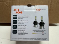 Sylvania LED 9008 H13 Headlight High/low beams, 6000K Cool White 2 Bulbs. Direct install replacement for most vehicles. Active cooling fan. Aluminum housing. 12.8V DC, 10/13 watts. Sold as is, no returns. Please check fitment for your vehicle before buying.