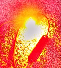 Whelen Vertex 6-LED warning light in red. This is the small round Vertex style light commonly used as a hide-away or surface-mount warning light. The light operates on 12 VDC and features multiple selectable flash patterns.