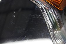 Headlight has scratch pic nr 4,5, stress cracks in pic nr 6, haze on lens in pic nr 7,8 and broken tab in pic nr 9,10. You buy used part we are trying to make sure the item is in good condition.