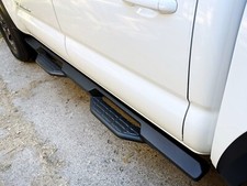 2016-23 2021 TOYOTA TACOMA RUNNING BOARD STEP GENUINE FACTORY OEM BLACK left and right side Pair. Aluminum 17.1 Lbs. ea. step boards that mate to the cab (not the frame). These rails show minimal wear and include all mounting hardware. Ground clearance is 13” with standard oe tire size.