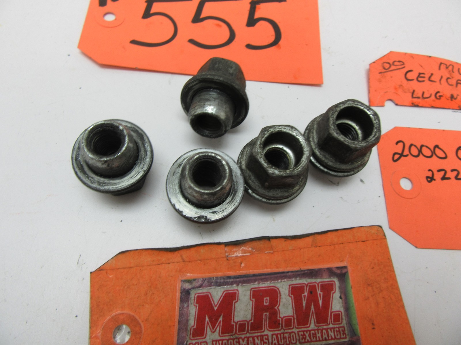 **YOU ARE LOOKING AT ONE USED SET OF 5 LUG NUTS, AS SHOWN IN THE PHOTOS. 13/16 / 21MM** **IT IS OUT OF A 2000 TOYOTA CELICA GTS WITH A 2ZZ-GE 1.8L (VIN Y AS THE 5TH DIGIT) ENGINE AND 6 SPEED MANUAL TRANSMISSION,** **ABSOLUTELY RED IN COLOR; COLOR CODE IS 3P0; 148,497 MILES.** **IT IS USED BUT IN GOOD CONDITION.** IF YOU HAVE ANY QUESTIONS PLEASE ASK PRIOR TO BUYING. ALL SALES ARE FINAL. WE SELL EVERYTHING AS-IS, NO RETURNS. LOOK FOR MORE GREAT ITEMS IN OUR STORE. THANKS &GOOD LUCK! MRW488 STOCK# MW555 OR MW555 OR MW555 OR MW555 HOLLANDER# \*\*\*\*\*PART IS PULLED OUT AND READY TO SHIP !! The free listing tool. List your items fast and easy and manage your active items.