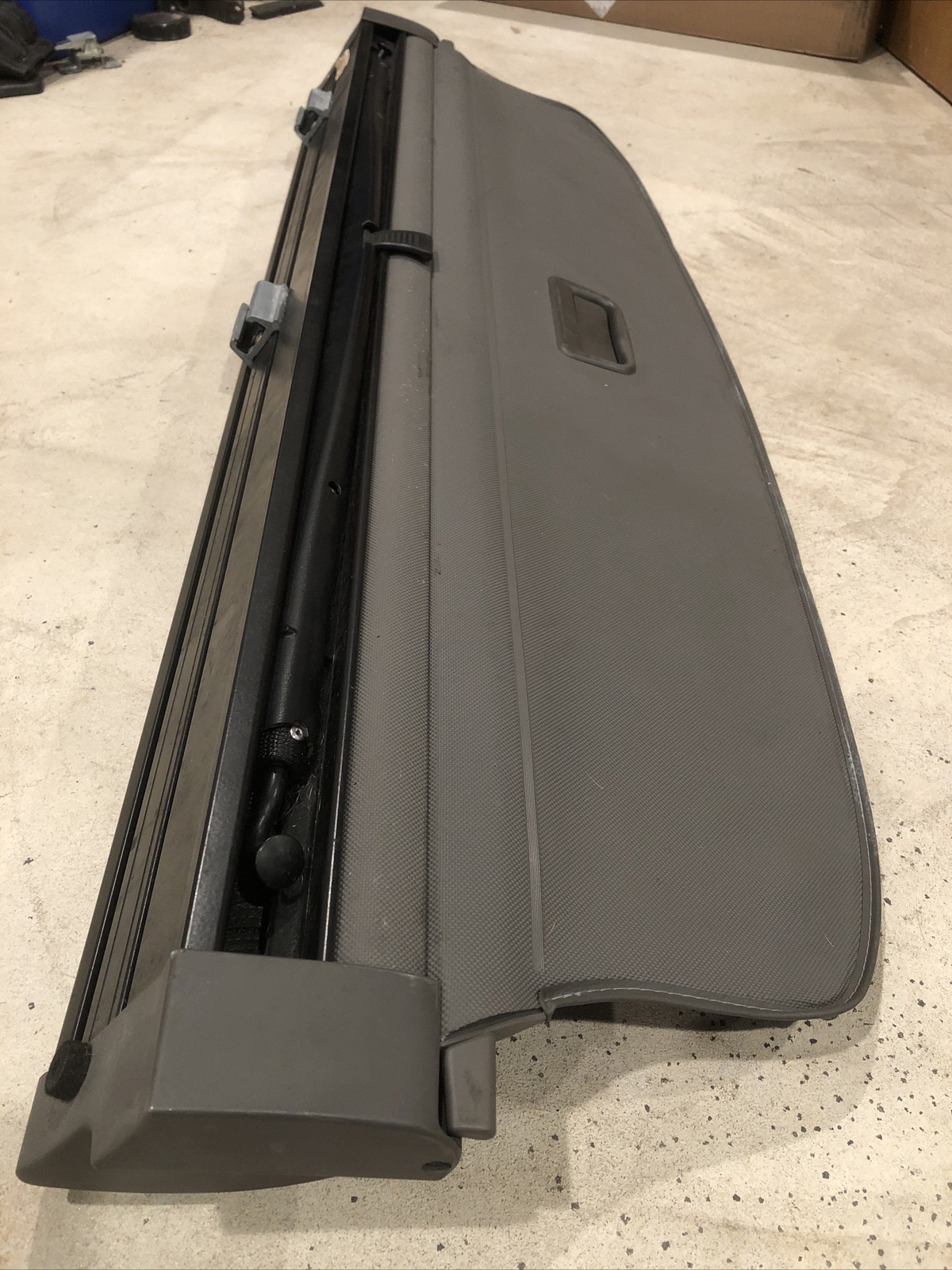OEM retractable cargo cover, removed from a ‘03 Audi A4 Avant Quattro. I believe the color is Platinum Grey. Good condition, overall. All mounting points are intact. There are no rips in the cover or net. Each retract correctly. The black trim for the net is partially broken, and it could use a little cleaning. Should fit ‘02 - ‘05 B6 Audi A4 Wagon models. Part number: 8E9 863 553 A77J