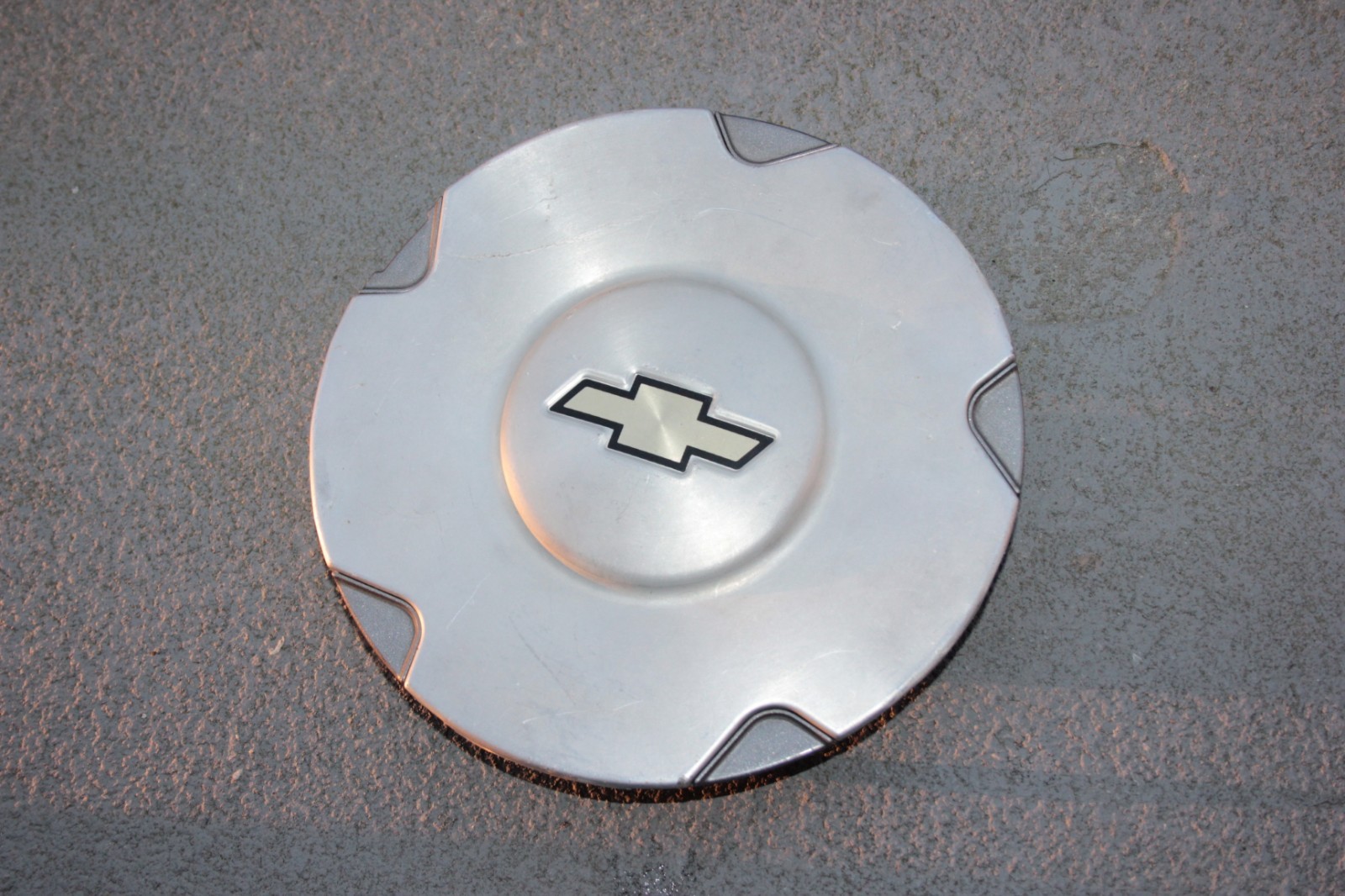 Selling excellent used gray/silver color Chevy aluminum wheel center cap with p/n 9593378, it has a couple of small scratches. The tabs are good except one which is missing one tooth out of two