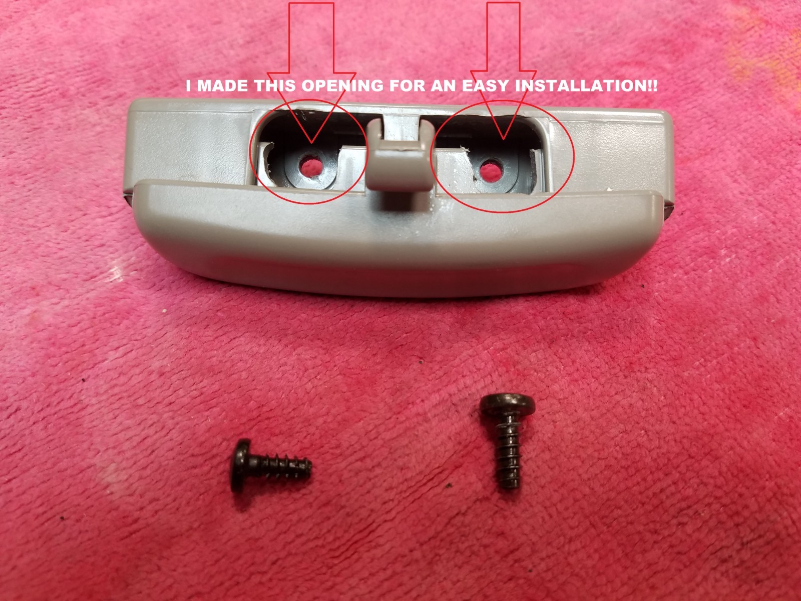 LATCH IN GREAT CONDITION,I MADE AN OPENING FOR AN EASY INSTALLATION PLEASE LOOK 2ND PICTURE ,COLOR LIGHT GRAY THIS LATCH FITS 2002-2006 TOYOTA CAMRY------- 2004-2008 TOYOTA SOLARA ----- 2002-2003 LEXUS ES300 ----- 2004-2006 LEXUS ES330 THANKS FOR LOOKING