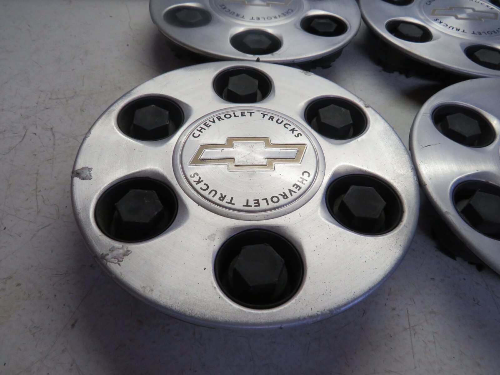 # 02 SILVERADO CENTER CAPS **Warranty and Shipping:** **- We offer a 30 day return on all of our parts. If there is an issue with your part, please contact us as soon as possible so we can assist you.** **- Shipping is via USPS/UPS/FEDEX. We have a 1 day handling time on all orders, meaning we ship out the next business day M-F, if you place a order on Friday it will go out Monday** **- All of our parts are used and will show wear from previous use on a vehicle. There will be marks and light scratches as these are used items. Its your responsibility to make sure the part is correct for your vehicle, research the part number to make sure it matches yours and please check with your mechanic if the part you are purchasing might need to be programmed to work. Most electronic parts are not plug and play. Customer is responsible to get parts programmed to their car. Parts are tested before removal, if there is a issue please let me know.** **- Please contact us immediately with any questions, concerns, or comments.** **- Due to a rash of buyers returning their old defective parts in place of my part I have marked every part I ship out. ALL returns must be returned and verified to be my part. Thank you!**