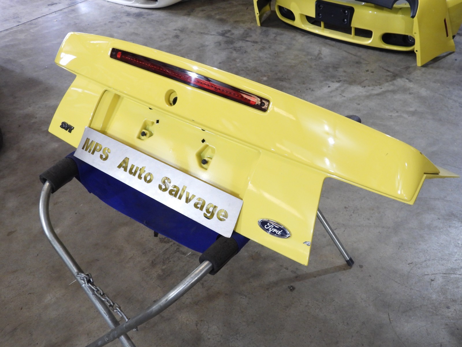 Item Description: This listing is for one 2003-2004 Ford Mustang Cobra Zinc Yellow "B7" OEM Decklid Wing With Spoiler & NON cracked 3rd Brake Light.. Good used functional take off. We look forward to your business. Shipping Informtaion: This item ships by Truck Freight. We use R&L Carriers. There is a $34.99 pallet fee to be included in the shipping. We will need a zip code in order to provide shipping quotes. Any Tax, duties, or brokerage fees are the buyers responsibilities. We process & pull paypal orders Monday - Friday at 10 am EST. If you place an order after this time, it will not be processed until the following BUSINESS day. We are closed on Saturday and Sundays, these are not business days. We use the most economical carriers for you depending on the item & your location. We have pick ups from our location Monday - Friday throughout the day. Freight tracking numbers are available upon your request. Contact Us: Please use the contact seller directly through the listing, and your email will be answered in a timely manner. About Us: We have been serving the late model Ford Mustang community since 1986. We have over 30,000 square feet of Mustang parts under roof! We have the most knowledgeable staff in the industry. Specializing in driveline conversions, or any project, rebuild, or restore requiring those hard to find New & Used Mustang parts. All members of our staff are hands on! All of our vehicles are stored inside before and after dismantling!!