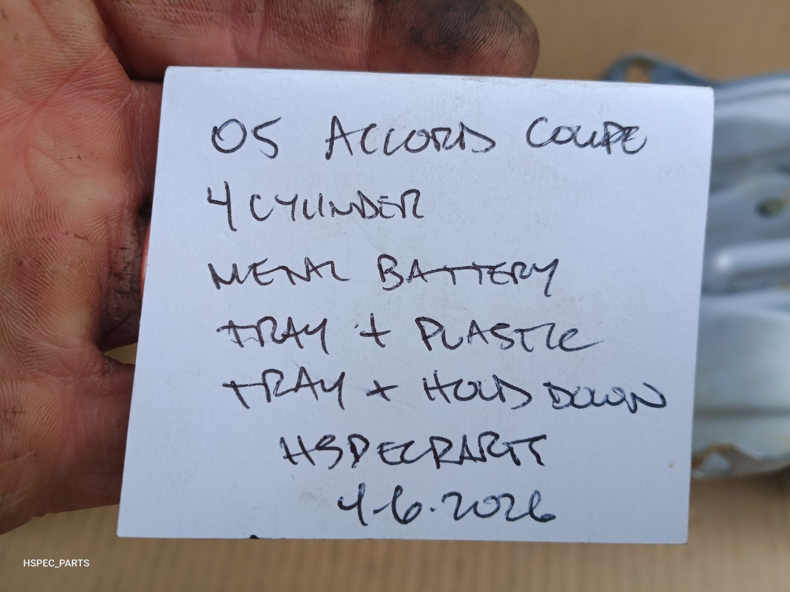 HSPEC ACURA HONDA OEM PARTS 03-05 ACCORD K24 BATTERY TRAY (Metal + Plastic) HOLDER TIE DOWN BASE BRACKET SET. Condition is USED. VERY GOOD USED CONDITION. OEM SILVER BATTERY TRAY, BLACK PLASTIC TRAY AND HOLD DOWN BRACKET WITH J HOOKS. NUTS MOVE FREELY BY HAND. ALL FROM A MANUAL TRANS 2005 ACCORD COUPE WITH 4 CYLINDER ENGINE. SHIPS USPS WITHIN A BUSINESS DAY OF PAYMENT. PICS ARE CURRENT AS OF 4-6-2026. ACTUAL PICS OF ACTUAL PART YOU WILL RECEIVE. NO BAIT N SWITCH!! Bid with confidence as I ship Mon-Sat USPS. Mon-Fri USPS/FEDEX. Shipping only to the lower 48 states. There will be 10-20% restocking fee on ALL RETURNED ITEMS. THANK YOU!! 8 YEARS AND COUNTING!!!