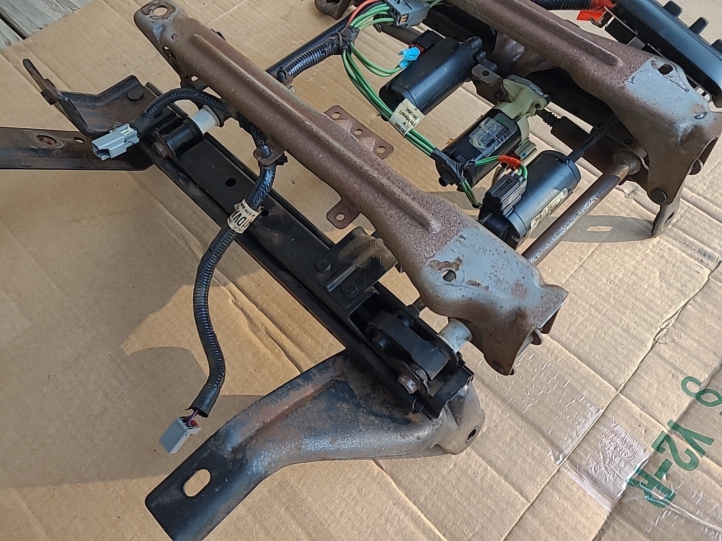 Nice used driver side power seat track in good working condition. All switches and motors are working properly. This item comes exactly as pictured and was removed from a wrecked 2005 Dodge Ram 2500 quad cab equipped with a 24V Cummins diesel engine and a 48RE automatic transmission. Thank you for considering downhomeparts.