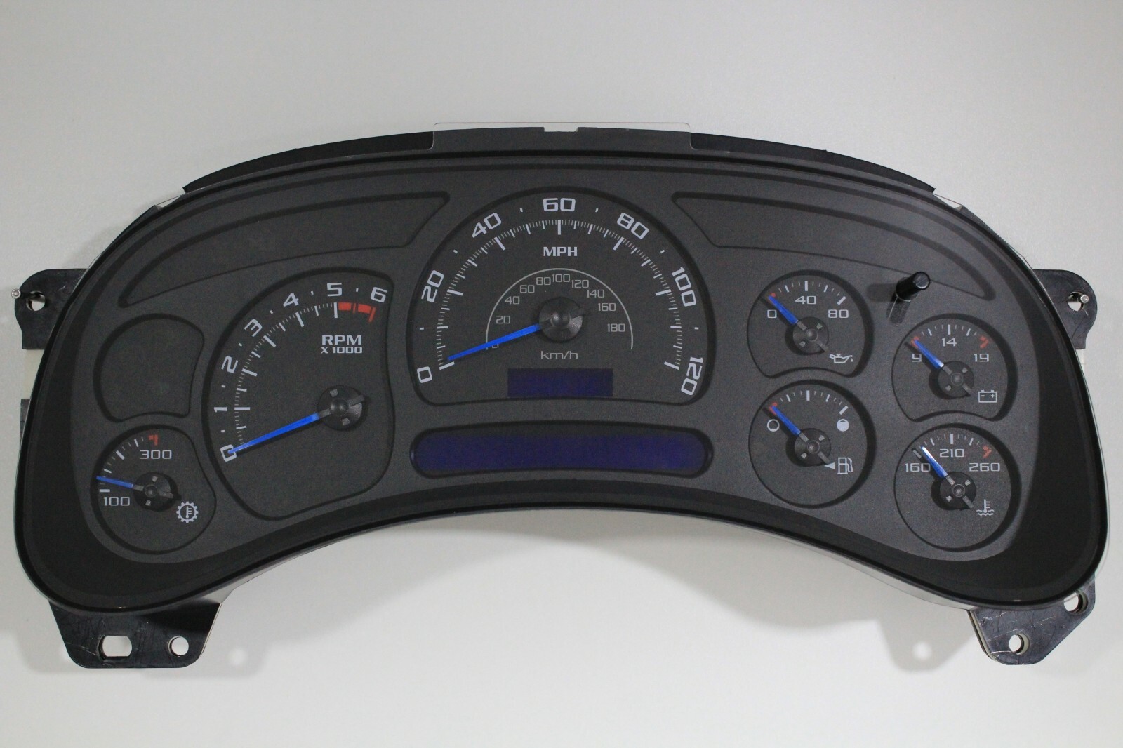 **When purchasing please send me your current original mileage & VIN using "contact seller". I need this information so I can send you the correct cluster with correct programming so it will plug & play when installed. **DIGITAL-DASH-SOLUTIONS in house Programming...** All cluster sales will be programmed to your vehicles VIN and mileage so it will plug & play, no dealer visit needed. Please send me your current original mileage & VIN using "contact seller", please type out the info, do not send me a picture of the VIN. If I do not receive this info your order will be cancelled in 1 day. I need this information so I can send the correct cluster with correct programming and I will look up the vehicle’s mileage history. Any indication of mileage cheating the order will be cancelled and your money refunded. If a steering wheel with controls were added please let me know with mileage and VIN. Tire circumference changes can't be done in the cluster so don't ask. Kilometer versions are available to order for export countries. **Factory Re-manufactured...** All my clusters have been professionally re-manufactured and computer tested at a GM repair facility using all new OEM GM parts including all new OEM stepper motors and back lighting, most clusters come with brand new lenses. Then it was customized by me using my DIGITAL-DASH-SOLUTIONS products which meet or exceed GM standards. The transmission temperature gauge has been added to all custom gas clusters in the lower left corner to monitor your transmissions temperature, this gauge will plug & play in every GM truck and SUV even if you don't have one now. All full size trucks and SUV's are pre-wired from the factory for the gauge. Manual transmissions do not apply. **About Digital-Dash-Solutions...** Here at Digital Dash Solutions I have a vast inventory of over 3,000 brand new and factory remanufactured 03-06 OEM genuine GM truck clusters ready to ship. Digital-Dash-Solutions has the largest inventory of custom GMT800 clusters anywhere. Every cluster gets my personal attention. **Below is a list of Digital-Dash-Solutions custom parts available for cluster sales only, these parts are not sold****separately but are available for dealers...** **Digital-Dash-Solutions Exclusive 2003 - 2006 Custom Gauge Faces...** Escalade Black Escalade White (not applicable with white LED's) Escalade Silver Escalade Carbon Fiber SS White (not applicable with white LED's) 140mph with 7,000 RPM tach, white or black, gas engine only. (ok with white LEDs). **Digital-Dash-Solutions Custom Pointers: (dimpled hub)...** Blue/chrome hub, blue/black hub, blue/silver hub & blue/white hub. (Note: some people have trouble seeing blue at night). Bright red/black hub & bright red/silver hub. white/black & white/silver. Red/chrome hub, red/black hub, red/silver hub & red/white hub (not compatible with blue LED's). Teal/chrome, teal/black teal/silver (not compatible with blue LED's). **Digital-Dash-Solutions Premium Pointers: Chrome with colored strip down the middle, black hub. (similar to 07-13 Escalade)...** White & Chrome with black hub. Blue & Chrome with black hub. Red & Chrome with black hub (not compatible with blue LEDs). **Factory Pointers (smooth hub)...** White with black hub. Bright red with black hub. Orange with black hub. **Digital-Dash-Solutions Custom LED's...** Red, White & Blue available. **Digital-Dash-Solutions Lens Covers...** Stock. Denali (grey). Escalade Classic style (silver rings around all 2 gauges). Escalade style (chrome rings around all 7 gauges). If you can't find a cluster with the colors you like I can build it for you but it will need to be ordered. **Your Old Cluster...** Returning your old cluster is optional, but if you do I will upgrade your guarantee for life. No water damaged clusters please. Free return shipping from the lower 48 states only. I will include a prepaid return label for your old cluster. This label can’t be used for any other purpose since it will be shipped to a different location. **LEGAL...** It is not a criminal offense to adjust a vehicle odometer reading, however, selling a vehicle with the intention to defraud the odometer reading is a criminal offense. The service described on this page is intended for the lawful service of digital odometers in accordance with local laws. It is unlawful to reset odometers to read less than the true mileage of the motor vehicle. I offer these services for lawful use only. It is the client's responsibility to seek legal advice regarding compliance within their local laws. DIGITAL DASH SOLUTIONS LLC HAS ADVISED ME OF MY LEGAL OBLIGATION TO NOTIFY PROSPECTIVE PURCHASERS THAT THIS VEHICLE’S MILEAGE HAS BEEN ALTERED. I HAVE ALSO BEEN ADVISED THAT CHANGING MILEAGE FOR PERSONAL GAIN IS A SERIOUS OFFENSE FOR WHICH I MAY BE PROSECUTED. DIGITAL-DASH-SOLUTIONS LLC RESERVES THE RIGHT TO REFUSE ANY SALES OR SERVICE WITHOUT EXPLANATION, INCLUDING TYPOGRAPHICAL ERROR'S. I/WE ACCEPT THE ABOVE TERMS AND CONDITIONS. I/WE ARE FULLY AWARE OF THE LEGAL IMPLICATIONS IMPOSED. I/WE FULLY AGREE THAT DIGITAL-DASH-SOLUTIONS AND ITS EMPLOYEES, OFFICERS, AGENTS, REPRESENTATIVES SHALL BE HELD HARMLESS FROM ANY AND ALL CLAIMS, ACTIONS, CAUSE OF ACTIONS, DEMANDS, RIGHTS, DAMAGES, AND ATTORNEY FEES RELATING TO OR ARISING OUT OF DIGITAL-DASH-SOLUTIONS LLC WORK ON THE ODOMETER. **Warranty...** Please be advised: If the product proves defective during the guarantee period, the customer shall be responsible for all expenses incurred for diagnosis, removal, packaging and return shipping. The guarantee is effective from the day upon receipt of the product till the ending term of the guarantee period. Digital-Dash-Solutions will not refund any incurred installation charges under any circumstances. Digital-Dash-Solutions guarantees the product will be free from defects in materials and workmanship for the period advertised from the date of receipt with unlimited mileage. In the unlikely event of product failure, yo