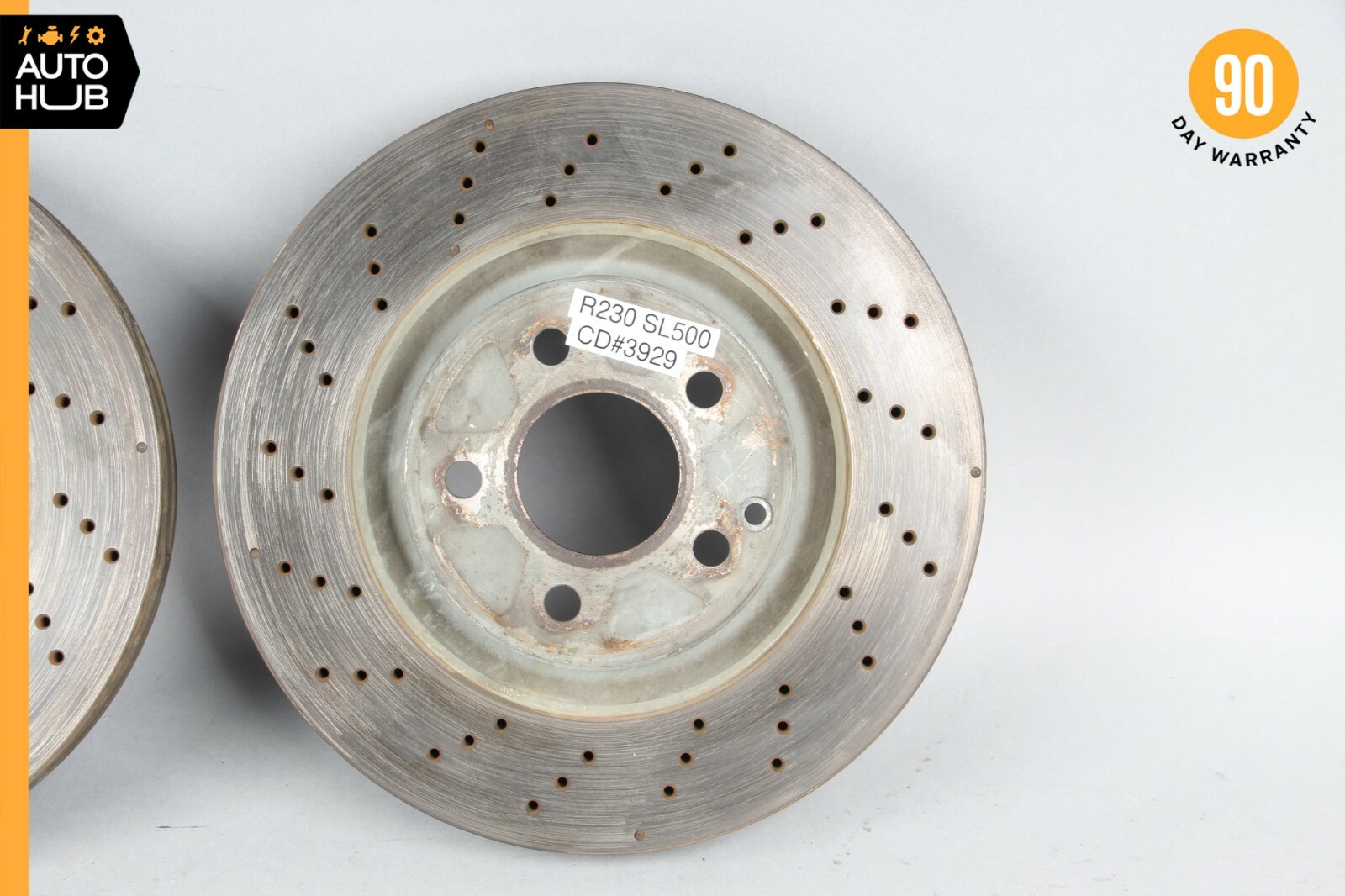 ## 03-06 Mercede R230 SL500 SL600 ## Front Brake Rotor Disc Set of 2 Left & Right ## 2304210512 OEM ### PLEASE READ BELOW: ###### When you buy our item you agree to our terms and conditions ### Item Condition: Good / Normal Use / As shown in the photos / It is buyer's responsibility to carefully inspect all of the photos for details and/or request more photos if necessary. - PLEASE VERIFY COMPATIBILITY BEFORE BUYING. - IT IS THE BUYER'S RESPONSIBILITY TO DETERMINE WHETHER THE PART WILL FIT HIS/HER CAR OR NOT. - PLEASE MAKE SURE TO MATCH THE PART NUMBER WITH YOUR ORIGINAL PART. - WHAT YOU SEE IN THE PHOTOS IS WHAT YOU WILL RECEIVE. ### Shipping Policies: - You are welcome to pick up your item at our location - please contact us for address. - Shipping prices for ground apply only to the continental United States. Anywhere else is considered international shipping and will have an international shipping rate. - Process time for shipping is **1 business day for small and medium size items, and 2 business day for larger size items (Hood, Door shell, Engine, Transmission etc.)** - Any international customs fees must be paid by customer. - Please note that we will only ship to the same billing address that payment is made from. - Big size items like Hood, Engine or Transmission can be shipped only to business/commercial address via Freight. Shipping to Residential address will be extra cost. - To pass our shipping savings onto you, we may alternate between FedEx or USPS or UPS depending on which is most affordable and/or faster. - When ordering from the US, parcels may be subject to Import Tax and Duty Charges, which the Buyer is responsible to pay. **Please Note:** Oversized items like bumpers, doors, door panels, hoods, trunk lids and other similar items will be shipped via **Freight Shipping.** ### Return Policy: - All returns must be made and will be accepted within 30 days of item being received by the customer only if the item is non-functional or if it differs substantially from the description. Please, do not buy just to check and diagnose your vehicle problem. - Buyer is fully responsible for the shipping cost of the return. Shipping and handling fees are non refundable. Most of our products are offered with free shipping. Meaning shipping has been included in the price to provide you with the total cost of the order. You will be refunded the purchase price minus our shipping costs as soon as item is returned to us. - All electronics are tested before removed from vehicle. **If not functional, we will NOT sell.** If the item is defected we will state accordingly and is sold for parts only. Please ask questions before purchasing. - We are not liable to pay for any labor fees associated with the installation or removal of any parts we sell. ### Warranty: - We offer 90 DAYS WARRANTY on all our parts. - All the parts are tested either before or after removal from the vehicle. - Before purchasing the item, the customer **MUST** verify that the item will fit the said vehicle. - Item may show light scuffs, scratches or other imperfections as a result of this **being a used part.** ### Contact us: - If you have a question about any part please contact us BEFORE purchasing. ### Important! Once you have received your item in satisfactory condition, please leave us feedback. If there is a concern or issue that would cause you to want to leave negative feedback, please contact us first and we will do our best to resolve the problem and satisfy the situation. Thank You