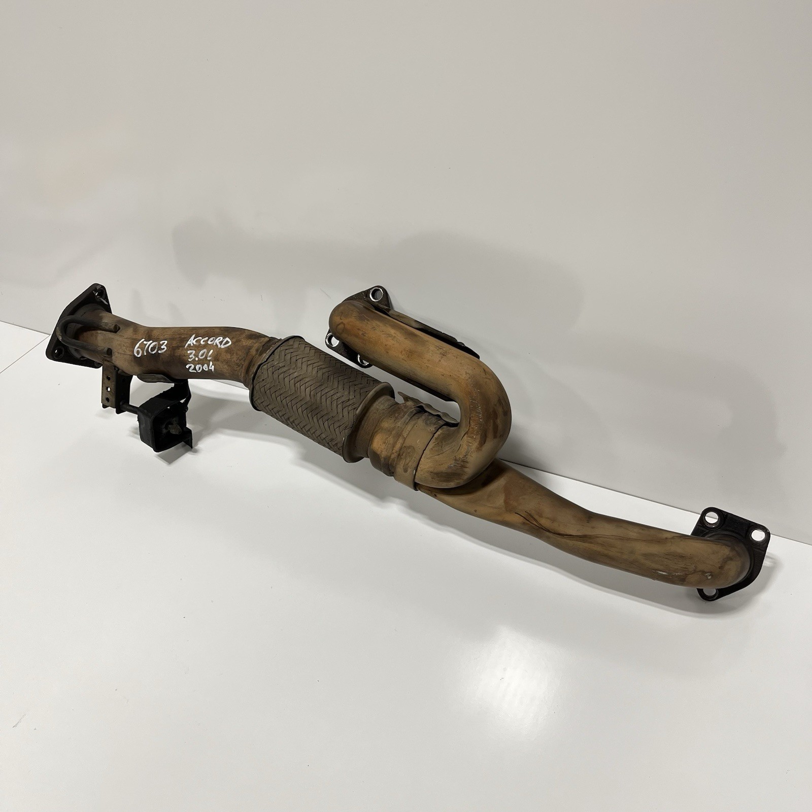 03-07 Accord V6 AT Pipe Engine Exhaust Manifold Down Outlet Tube J-Pipe Used OEM Condition: good, as shown, please see attached pictures, have some rust Ready to ship