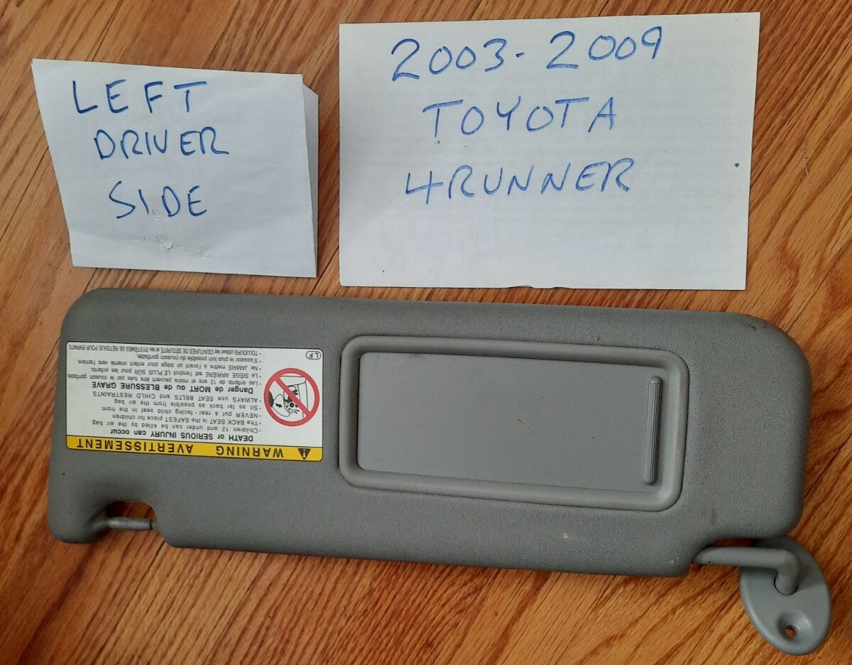 03-09 4runner GREY Driver Sun Visor Sunvisor Primary With Illumination 474390. 2003-2009 Toyota 4Runner LEFT DRIVERS Sun Visor Grey OEM. NOTED: USE PLEASE EXPECT WEAR AND ZOOM PHOTOS FOR DETAIL, HAS MINOR WEAR AND AGE OTHERWISE EXCELLENT SHAPE AND IT TIGHT AND IT WILL STAY IN PLACE. YOU WELL GET A CLEANED AND SMELL FRESH SUNVISOR. MONEY BACK GUARANTEED.. EXCELLENT SHAPE!! READ!! READ!!! EXCELLENT SHAPE AND SUPER CLEANED.. VERY NICE CLEAN SHAPE """OUR RETURN POLICY IS NOW FREE RETURN SHIPPING WITHOUT QUESTION ASK IN ANY REASONS"" EXCELLENT SHAPE, CLEAN AND WORKING CONDITION... \- USED BUT ITS CLEANED AND SANITIZE...
