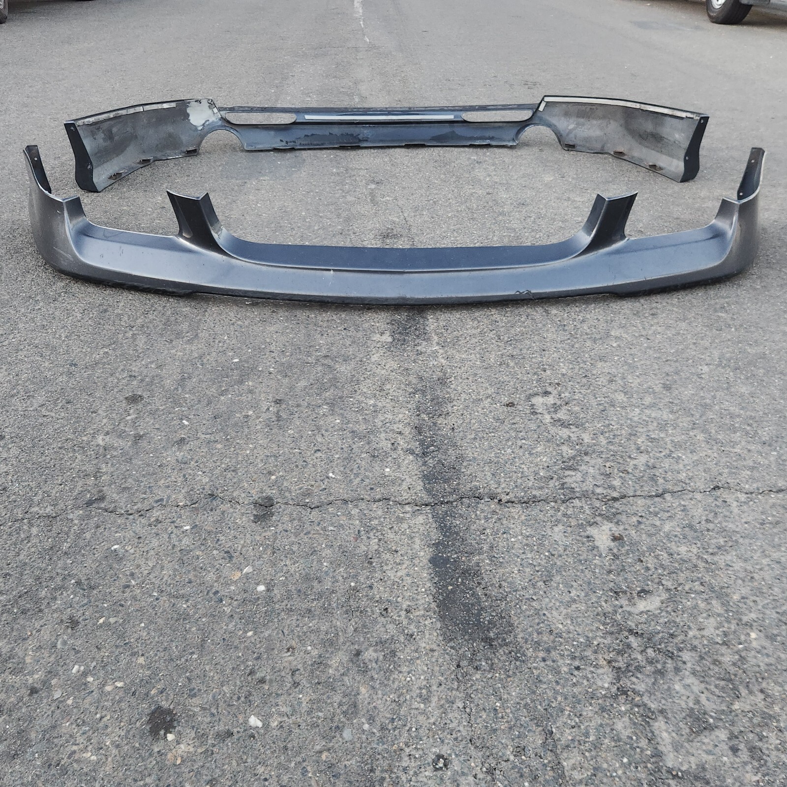 Up for grabs is a set of front and rear lips off a 05 Acura Tsx. Front lip does have rock chips and deep scratches towards the bottom. The front lip does have a crack. Rear lip was repaired by the previous owner. Overall, the lips are in good condition. if you have any questions, email me first before buying. What you see is what you get no warranties or guaranties expressed or implied. This item is sold on a AS IS basis. Will ship to the west coast only.