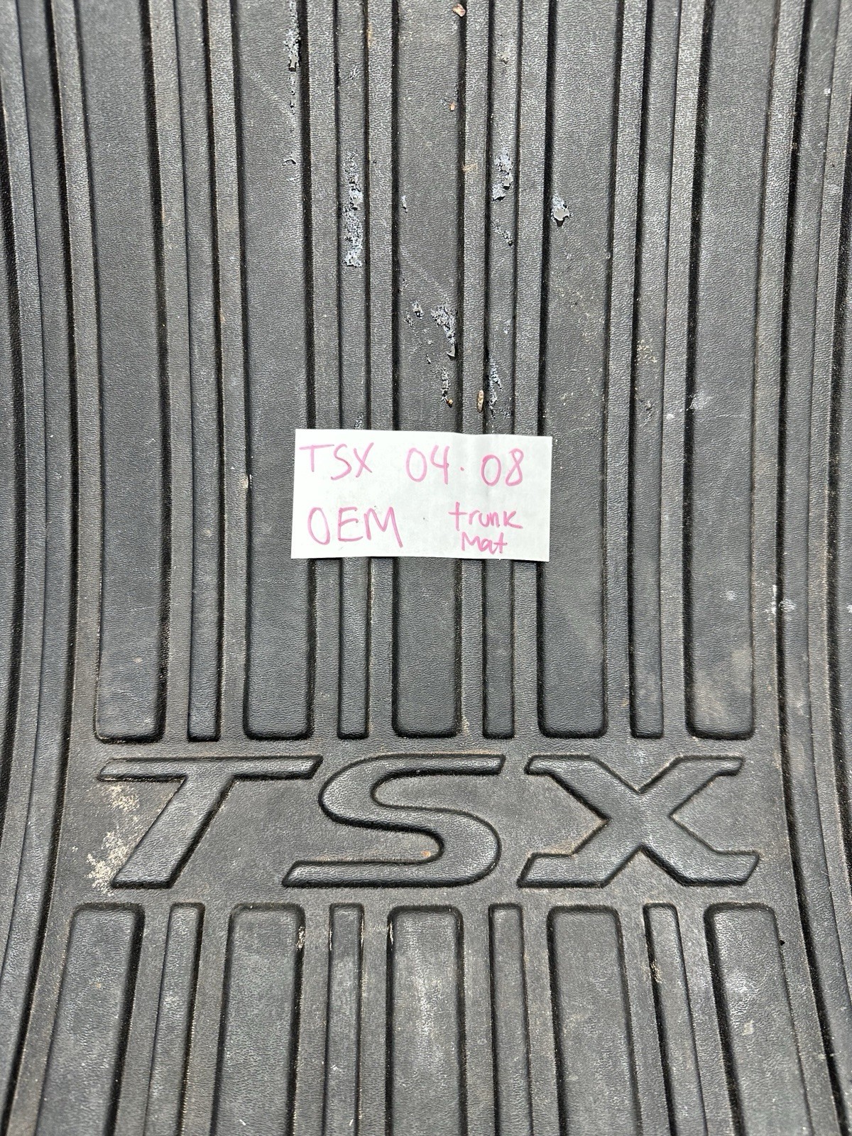 Acura TSX Trunk Mat Liner All Weather Rubber OEM. will fit: Acura TSX 2004 / 2005 / 2006 / 2007 / 2008 \*this is a STOCK PHOTO you may- or may not- receive the exact item photographed \*please note this is a used piece and shows signs of wear/IMPERFECTIONS, which are visible in the photos. Please double check the part numbers in the pictures to make sure it will work with your vehicle and ask questions before purchasing, proper fitment to your vehicle is your responsibility. All items have been tested and work properly. Items pictured are what will ship with the product. Items are taken out of a previously used vehicle and may have minor imperfections, which are visible in the photos.