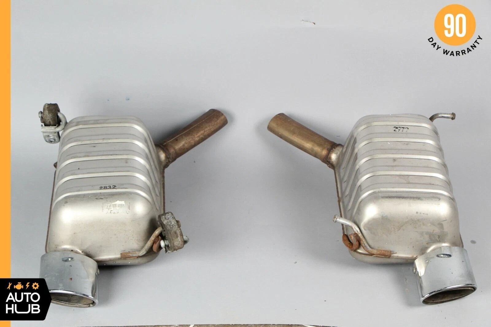 ## 05-08 Mercedes R171 SLK280 SLK350 ## Exhaust Muffler Left and Right Assembly ## 1714910401 / 1714910201 Original Mercedes parts. Please check photos for cosmetic condition of the items. Make sure to match the part number. ### PLEASE READ BELOW: ###### When you buy our item you agree to our terms and conditions ### Item Condition: Good / Normal Use / As shown in the photos / It is buyer's responsibility to carefully inspect all of the photos for details and/or request more photos if necessary. - PLEASE VERIFY THE COMPATIBILITY BEFORE BUYING OR **SEND US YOUR VIN NUMBER AND WE WILL ASSIST YOU****.** - IT IS THE BUYER'S RESPONSIBILITY TO DETERMINE WHETHER THE PART WILL FIT HIS/HER CAR. - PLEASE MAKE SURE TO MATCH THE PART NUMBER WITH YOUR ORIGINAL PART. - WHAT YOU SEE IN THE PHOTOS IS WHAT YOU WILL RECEIVE. ### Shipping Policies: - You are welcome to pick up your item at our location. - Ground shipping rates apply to the continental United States. International shipping rates apply everywhere outside of the continental US. - When shipping internationally, parcels may be subject to Import Tax and Duty Charges, for which the buyer is responsible. - Any international customs fees must be paid by buyer. - International orders will be shipped via USPS or FedEx International. Shipping cost or carrier may change, based on final destination. - Puerto Rico, Virgin Islands, Hawaii and Alaska **will require additional shipping charge.** - Most small items purchased **before 2:00pm (14:00) PST will be shipped the same day.** With the exception of items requiring special packaging.Orders processed **after 2:00pm PST will be shipped the same or the following day.** - Processing time for larger sized items is 1 business day. Large items include: hood, door shell, fender, engine, transmission, trunk shell, hatch, windshield, bumper, reinforcement clip, subframe, roof, quarter apron, gas tank, etc. - Large items can only be shipped to a business/commercial address via Freight Shipping. - Freight Shipping companies require the customer to unload the shipment. If you are not able to unload your shipment, the shipping company will charge for unloading on your behalf. - To pass our shipping savings on to you, we may alternate between FedEx, USPS depending on which is most affordable and/or faster. ### Return Policy: - All returns must be made and will be accepted within 30 days of the item being received by the customer. Items eligible for return are non-functional or items that differ substantially from the description. Please, do not purchase parts just to check and diagnose your vehicle’s problem. - **We are not liable for any labor fees associated with the installation or removal of any parts we sell.** ### Warranty: - We offer a 90 DAY WARRANTY on all of our parts. - All of the parts are tested either before or after removal from the vehicle. - Before purchasing an item, the customer **MUST** verify that the item will fit his/her vehicle. - Item may show light scuffs, scratches or other imperfections as a result of this **being a used part.** ### Contact us: - If you have a question about any part please contact us before purchasing. ### Important! Once you have received your item in satisfactory condition, please leave us feedback. If there is a concern or issue that would cause you to want to leave negative feedback, please contact us first and we will do our best to resolve the problem and satisfy the situation. Thank You