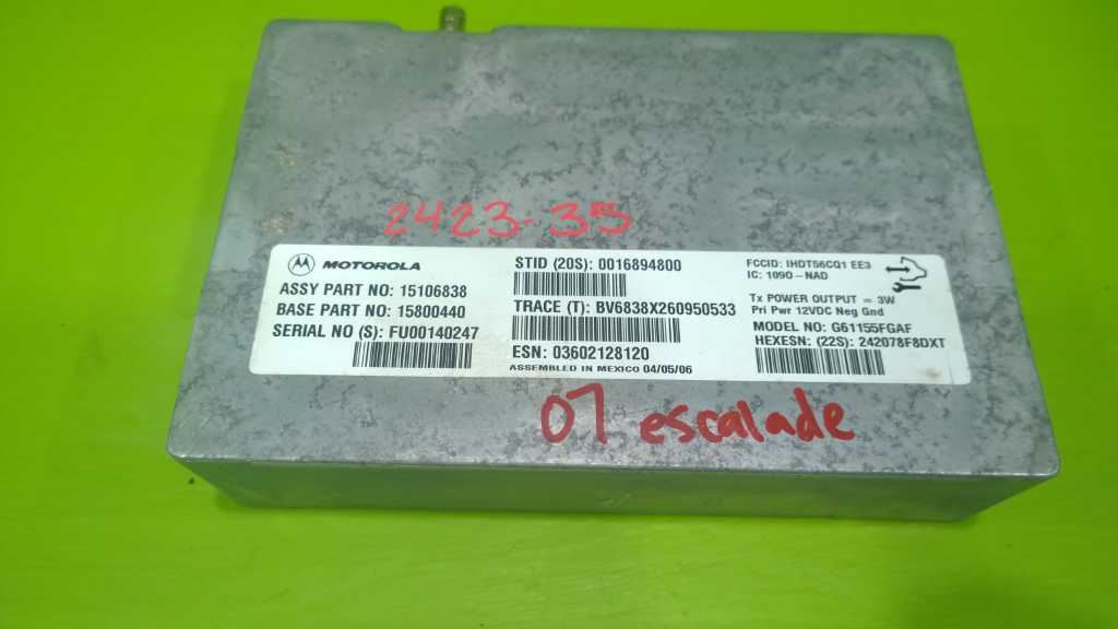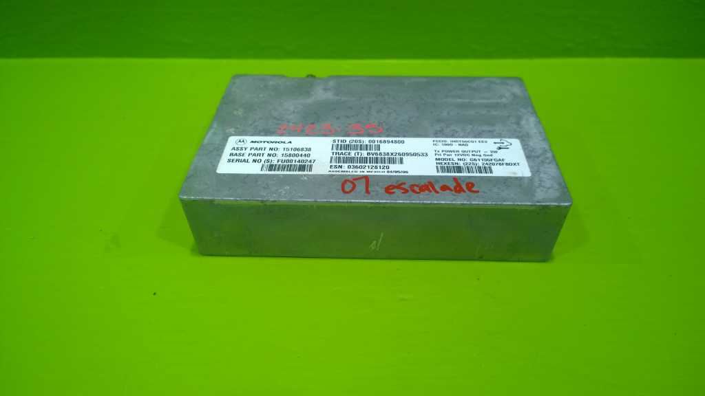 [        ##### Click Thumbnails to Enlarge             Product Description Donor Vehicle:2007 CADILLAC ESCALADE ESV 6.2L ATPart Being Sold:COMMUNICATION MODULE Part Number:15106838Item ID:242335