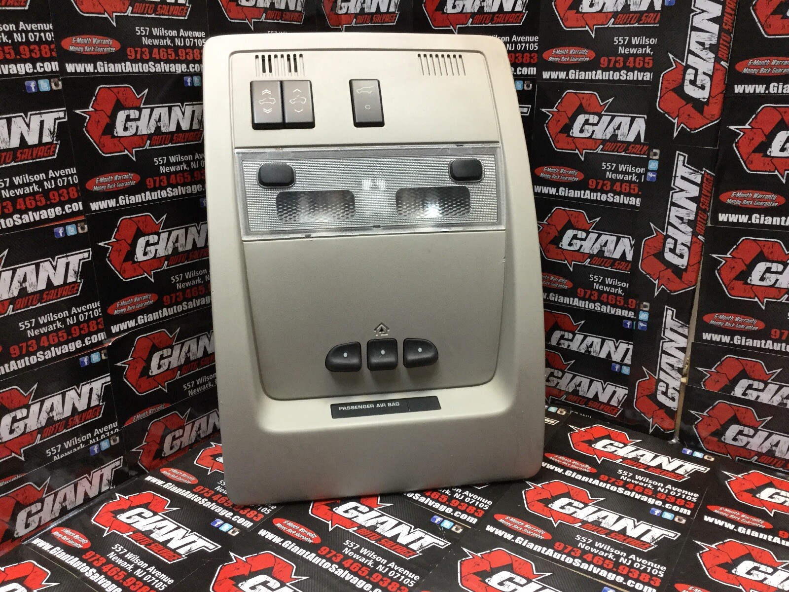 **CADILLAC ESCALADE ESV \[CONSOLE\_FRONT\] roof, w/sunroof 07 08 09 10 11** * * * **Donor Vehicle:** Model: ESCALADE ESV2007 Year: 2007 Odometer: 106000 Miles Stock Number: 00018211 * * * **Part Details & Important Notes Please Read:** * * * Comments: GRAY * * * **Interchange Information:** also fits the following models: ESCALADE ESV2007 \- 2011roof, w/sunroof ESCALADE2007 \- 2011roof, w/sunroof **Condition:** Please understand that the part that you are looking at is used. All of our parts are recycled and come from used and salvaged vehicles. Our parts have been inspected first for working condition and also for cosmetic appearance. This part may show some signs of wear relevant to age and usage and \\we will disclose if there is any light damage or abnormal wear. The 30 day period starts when you take possession of the part. No labor warranty is provided. In the event a part sold with a warranty fails to operate within the warranty period we will replace the part(s) with a functionally equivalent part or refund the part purchase price, at our option. No refunds on deposits or unwanted special order parts or special "cut" items. Original shipping charges and return shipping charges are not refunded NO EXCEPTIONS. Once you receive further instructions, ship the item back to GIANT AUTO SALVAGE 557 Wilson Ave Newark NJ 07105. DO NOT SHIP ITEMS PRIOR TO CONTACTING GIANT AUTO SALVAGE. WE ARE NOT RESPONSIBLE FOR WARRANTY OR RETURN ITEMS THAT ARE LOST. Return shipping is YOUR responsibility per my return agreement marked above. This goes for Warrantied/defective items, items not wanted, & items not needed. All items being returned maybe subjected to a 20% restocking fee to cover shipping paid prior. * * * **Shipping UPS & Freight Shipments:** Giant Auto Salvage ships to US addresses within the 48 states only. No Alaska, APO, FPO, and PO Box No International shipping available. Pick up at our facilities is available. Please email us prior to your purchase to arrange pick up. Please allow 1-5 days for delivery. Most areas in the US are within 5 days. No expedited shipping is available. **Freight shipments are for business to business zoned deliveries. For residential deliveries a service charge of up to $100 will be applied. This goes for business’ that are in residential zoned areas.** * * * **Payment Policies:** We accept immediate payment using a credit card & PayPal only. Sales tax will be applied to all orders shipped to the state of New Jersey.