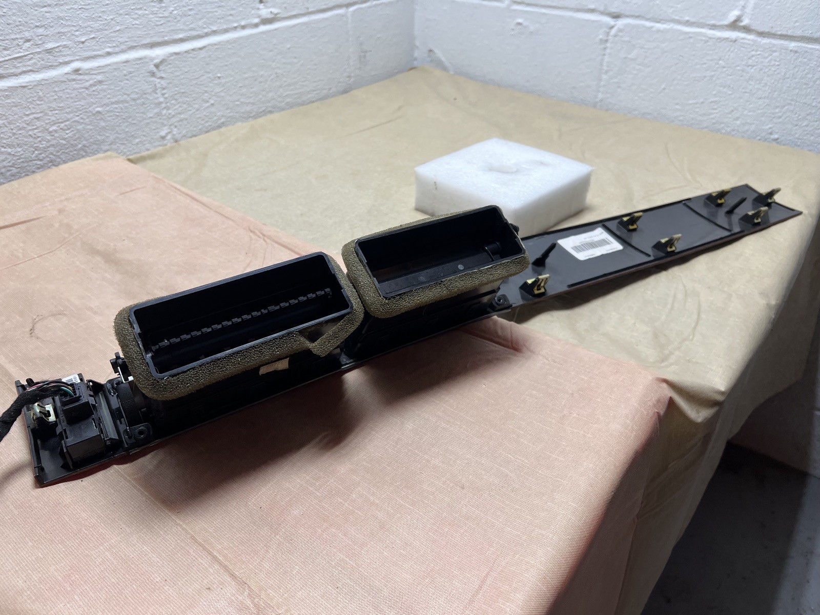 The product is a dash A/C vent wood grain trim specifically made for GMC vehicles from 2007 to 2013, including models like Yukon, Tahoe, and Suburban. The trim is crafted from wood, adding a touch of elegance and sophistication to the interior of the vehicle. This product is designed to give the dashboard a polished and stylish look, enhancing the overall appeal of the car's interior design. This specific unit was pulled from a 2007 GMC Yukon and is in almost perfect condition
