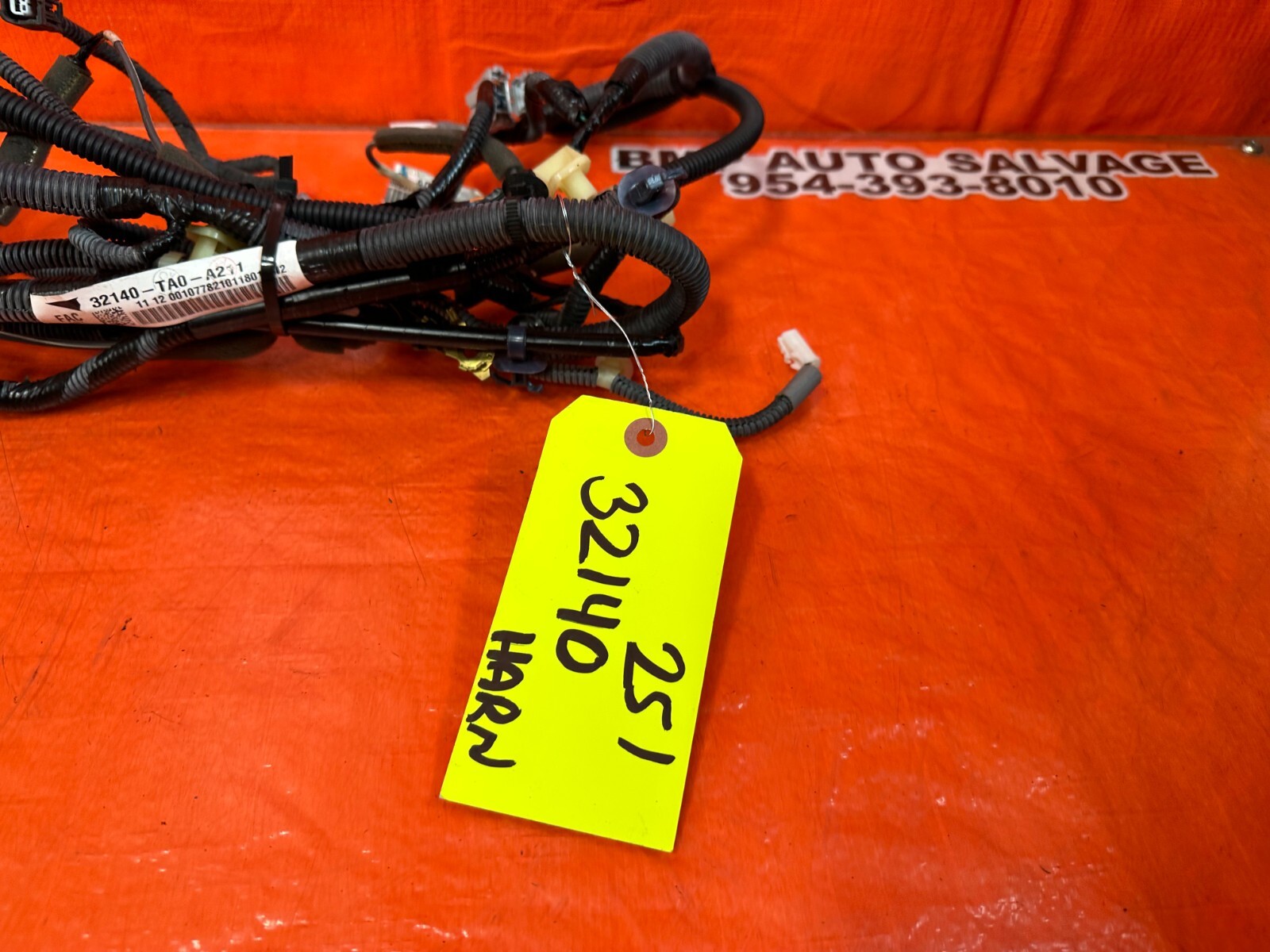 08-12 HONDA ACCORD SEDAN - PASSENGER RIGHT INTERIOR WIRE HARNESS WIRING LOOM 251