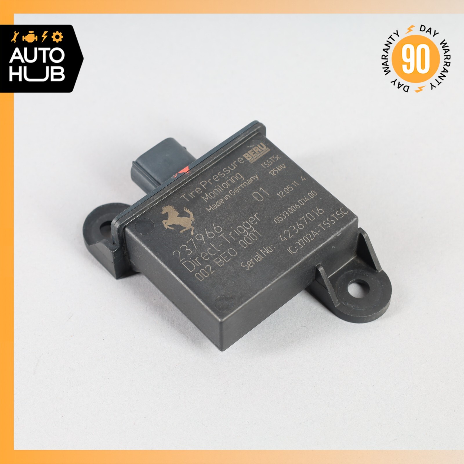 ## 08-19 Maserati GranTurismo S M145 ## Tire Pressure Monitoring System TPMS Receiver ## 237966 OEM 61k Original Maserati Part. Item is in good working condition. Please make sure to match the part number. Came off of GranTurismo with 61k miles. ### PLEASE READ BELOW: ###### When you buy our item you agree to our terms and conditions ### Item Condition: Good / Normal Use / As shown in the photos / It is buyer's responsibility to carefully inspect all of the photos for details and/or request more photos if necessary. - PLEASE VERIFY THE COMPATIBILITY BEFORE BUYING OR **SEND US YOUR VIN NUMBER AND WE WILL ASSIST YOU****.** - IT IS THE BUYER'S RESPONSIBILITY TO DETERMINE WHETHER THE PART WILL FIT HIS/HER CAR. - PLEASE MAKE SURE TO MATCH THE PART NUMBER WITH YOUR ORIGINAL PART. - WHAT YOU SEE IN THE PHOTOS IS WHAT YOU WILL RECEIVE. ### Shipping Policies: - You are welcome to pick up your item at our location. - Ground shipping rates apply to the continental United States. International shipping rates apply everywhere outside of the continental US. - When shipping internationally, parcels may be subject to Import Tax and Duty Charges, for which the buyer is responsible. - Any international customs fees must be paid by buyer. - International orders will be shipped via USPS or FedEx International. Shipping cost or carrier may change, based on final destination. - Puerto Rico, Virgin Islands, Hawaii and Alaska **will require additional shipping charge.** - Most small items purchased **before 2:00pm (14:00) PST will be shipped the same day.** With the exception of items requiring special packaging.Orders processed **after 2:00pm PST will be shipped the same or the following day.** - Processing time for larger sized items is 1 business day. Large items include: hood, door shell, fender, engine, transmission, trunk shell, hatch, windshield, bumper, reinforcement clip, subframe, roof, quarter apron, gas tank, etc. - Large items can only be shipped to a business/commercial address via Freight Shipping. - Freight Shipping companies require the customer to unload the shipment. If you are not able to unload your shipment, the shipping company will charge for unloading on your behalf. - To pass our shipping savings on to you, we may alternate between FedEx, USPS depending on which is most affordable and/or faster. ### Return Policy: - All returns must be made and will be accepted within 30 days of the item being received by the customer. Items eligible for return are non-functional or items that differ substantially from the description. Please, do not purchase parts just to check and diagnose your vehicle’s problem. - **We are not liable for any labor fees associated with the installation or removal of any parts we sell.** ### Warranty: - We offer a 90 DAY WARRANTY on all of our parts. - All of the parts are tested either before or after removal from the vehicle. - Before purchasing an item, the customer **MUST** verify that the item will fit his/her vehicle. - Item may show light scuffs, scratches or other imperfections as a result of this **being a used part.** ### Contact us: - If you have a question about any part please contact us before purchasing. ### Important! Once you have received your item in satisfactory condition, please leave us feedback. If there is a concern or issue that would cause you to want to leave negative feedback, please contact us first and we will do our best to resolve the problem and satisfy the situation. Thank You