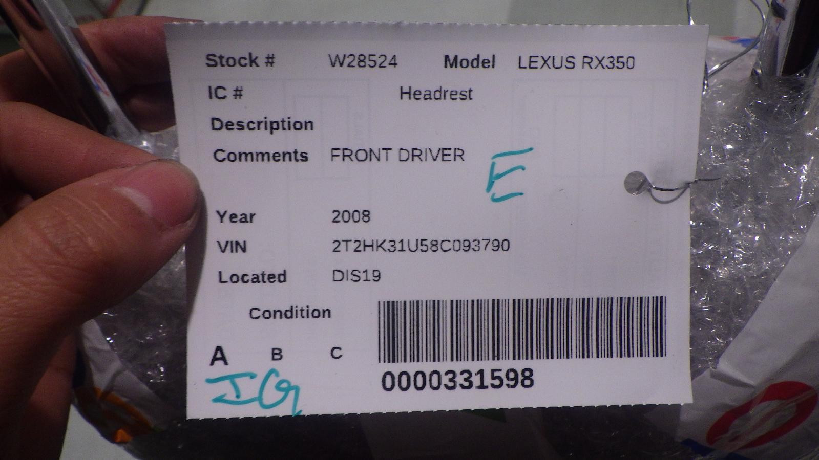 08 LEXUS RX350 Headrest