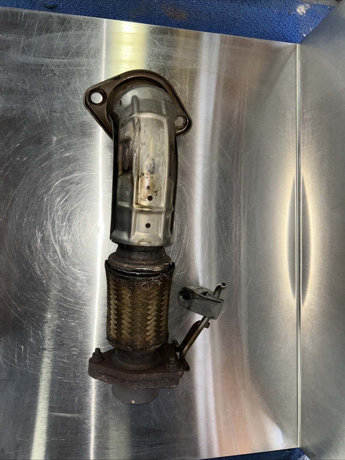 2011-2014 Acura TSX 2.4L exhaust flex pipe assembly. Item is in good working condition. Does show signs of wear.