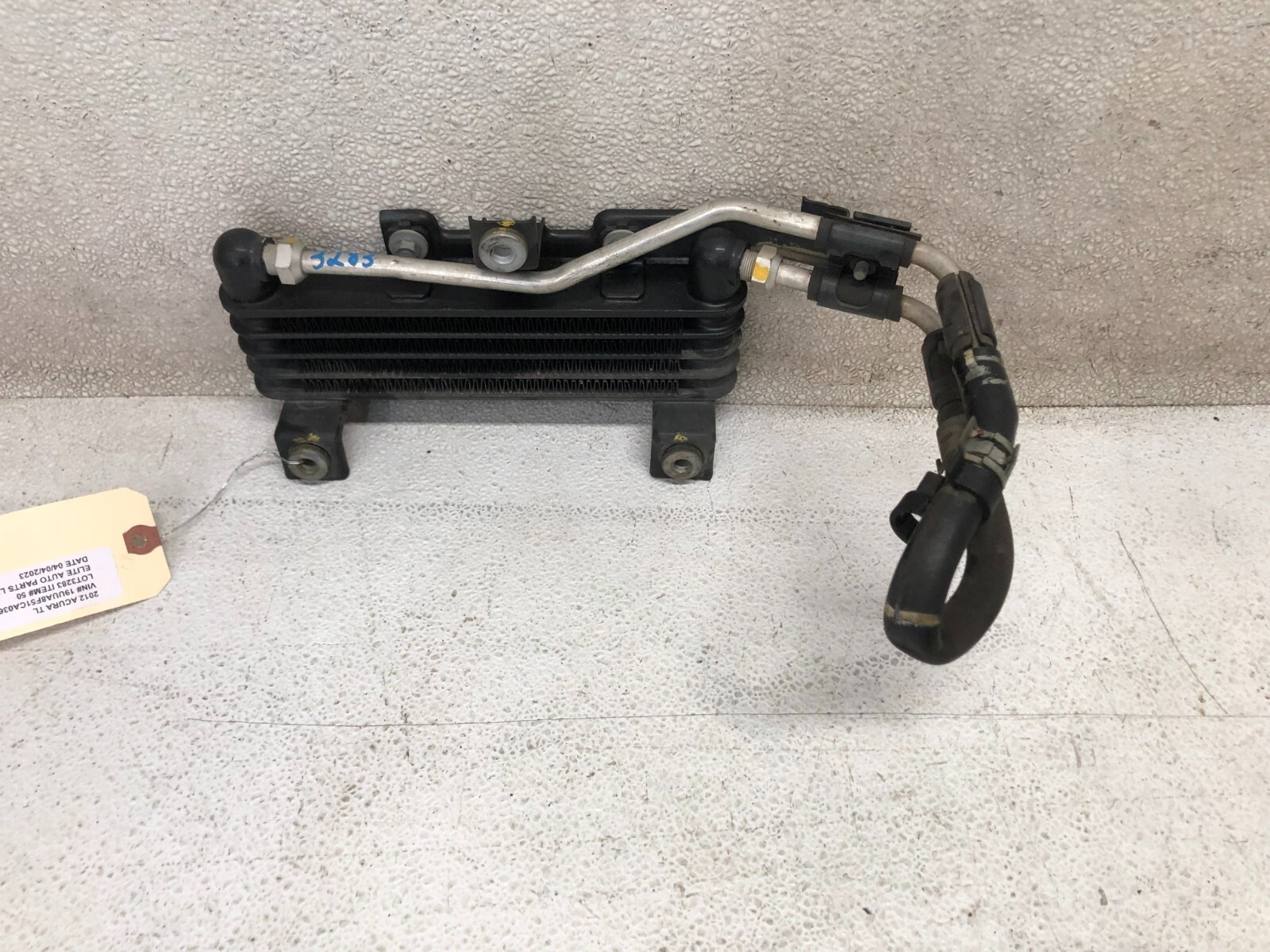 **ELITE AUTO PART** **2009-2014 ACURA TL AUTOMATIC TRANSMISSION OIL COOLER****ASSEMBLY, GOOD USED CONDITION.** **LOT3283# 50** Part #OEM **Look through pictures carefully and make sure this is exactly the part you are looking for.** **What yo** **u see is what you will** **receive.** DONOR CAR:--------- 2012 ACURA TL # VIN\#-----------------------------19UUA8F51CA036411 # **ENGINE:-----------------------**3.5L V6 COLOR:------------------------- BLACK NH731P **TRANSMISSION:---- AUTOMATIC FWD** **MILES:------------------ 172**K MILES