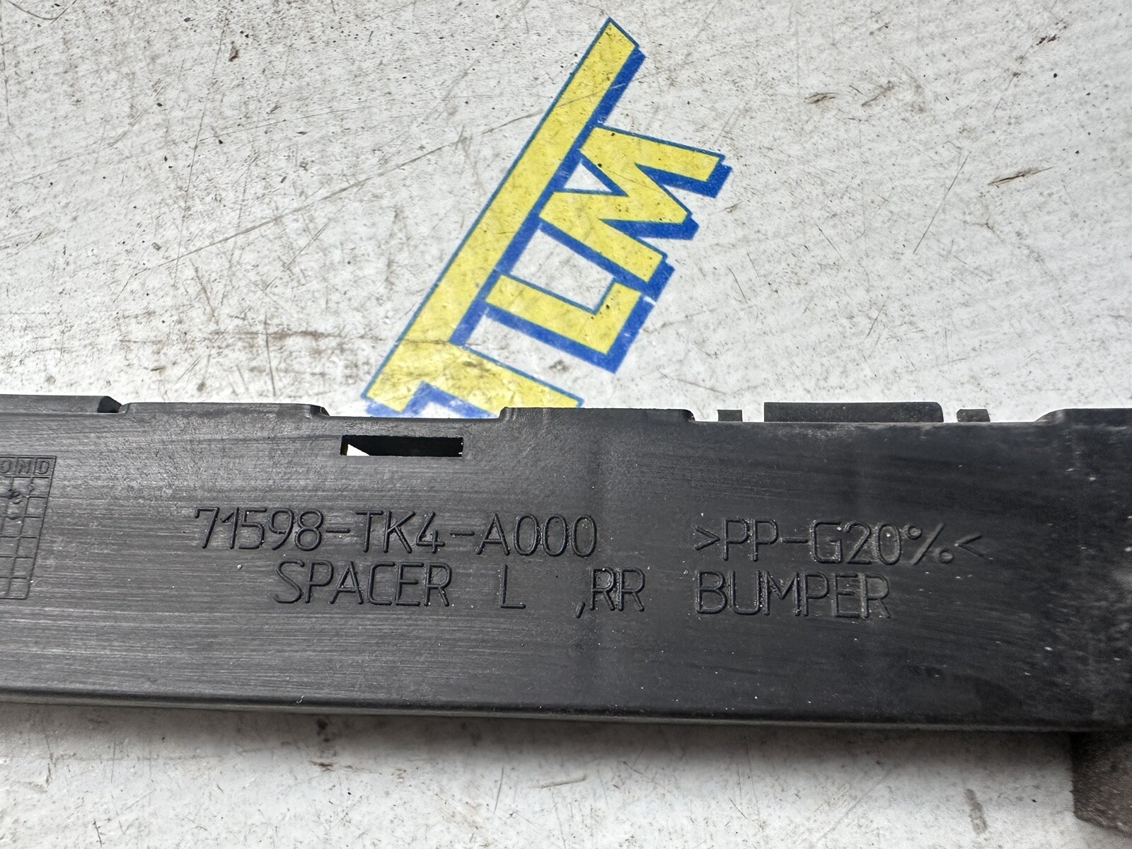 Acura TL REAR Spacer Bracket DRIVER LEFT Plastic OEM. will fit: Acura TL 2009 / 2010 / 2011 / 2012 / 2013 / 2014 REAR - DRIVER / LEFT 71598-TK4-A000 \\* LEFT SIDE \* \*this is a STOCK PHOTO you may- or may not- receive the exact item photographed \*please note this is a used piece and shows signs of wear/imperfections, which are visible in the photos. Please double check the part numbers in the pictures to make sure it will work with your vehicle and ask questions before purchasing, proper fitment to your vehicle is your responsibility. All items have been tested and work properly. Items pictured are what will ship with the product. Items are taken out of a previously used vehicle and may have minor imperfections, which are visible in the photos.