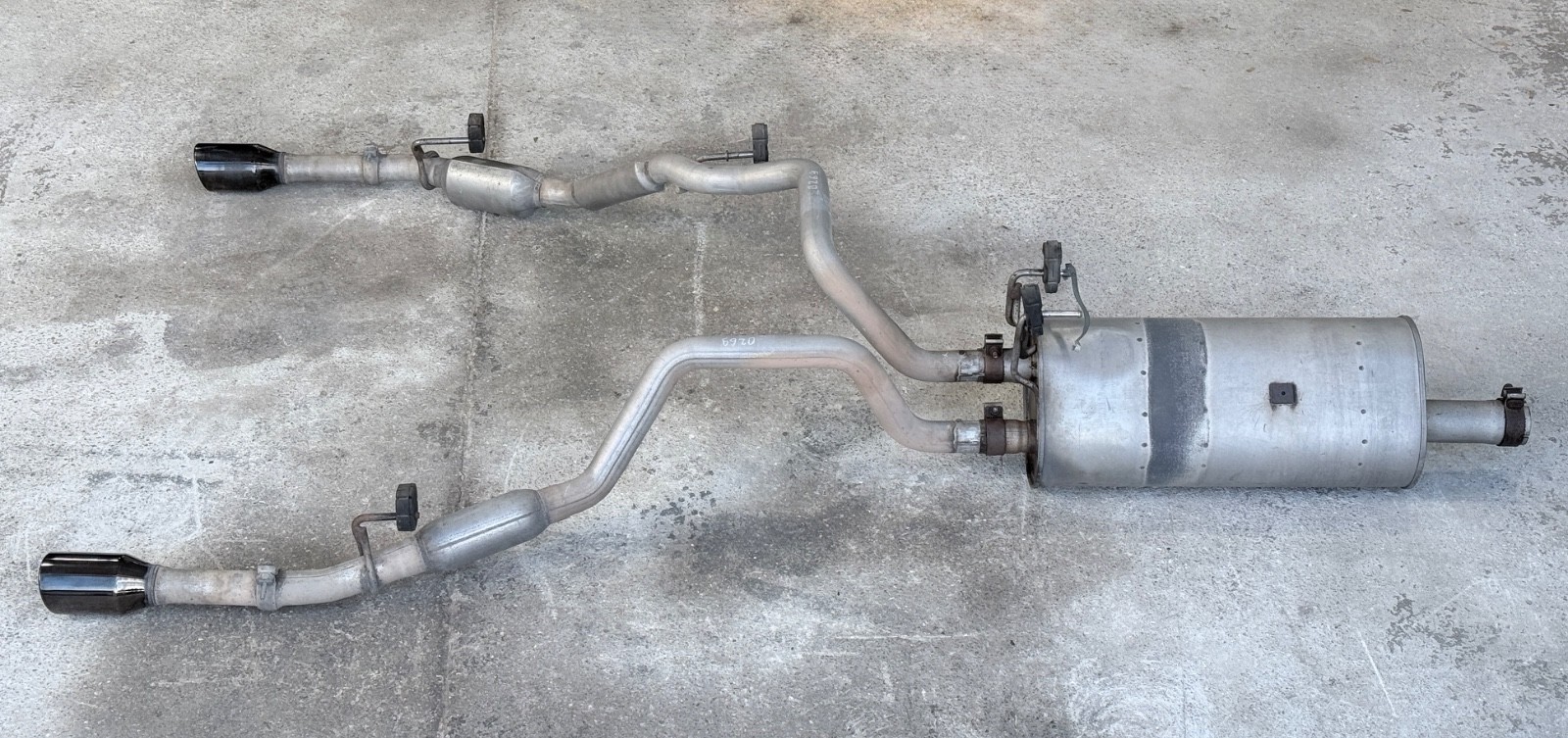**OEM****REAR EXHAUST SYSTEM / MUFFLER** **TAILPIPE / PIPE / TUBE** **WITH BLACK TAILPIPE TIPS** **FOR 2009-2024 RAM 1500 CLASSIC** **4TH GENERATION** **OEM PARTS** **PART #:****55398327AG** **REPLACES: 55398327AD, 55398327AE, 55398327AF** **FROM: 2022 RAM 1500 SLT QUAD CAB 4X2 5.7L V8 HEMI \| 84K Miles** **VIN #: 1C6RR6GT2NS120269** **ALL PARTS REMOVED, CLEANED & INSPECTED** **USED. GOOD WORKING CONDITION** **ACTUAL PHOTOS, PLEASE SEE PICTURES** **ALL PARTS HAVE BEEN REMOVED FROM THE WORKING VEHICLE AND** **ARE IN WORKING GOOD CONDITION** **1 BUSINESS DAY HANDLING** **30 DAY RETURNS. UP TO 50% RESTOCKING FEE** **I AM A LICENSED DEALER FOR THE SALE OF USED PARTS** **IF NECESSARY, WE CAN PROVIDE AN INVOICE FOR THE STATE INSPECTION** **SHIPPING POLICY:** • We can ship by USPS, FedEx, UPS. • Saturdays, Sundays, and Holidays are not considered shipping days. • Overnight and 2nd-day shipping are available for many items. Message or call us for pricing and availability. • We only ship items to 48 states.