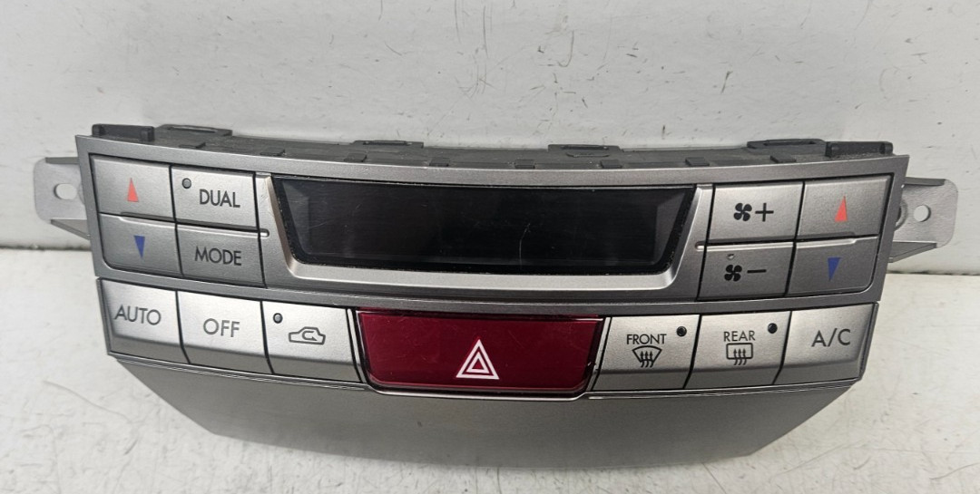 Subie Recycler, Inc. This heater A/C control assembly was removed from a 2011 Outback with auto climate control. Tested working before removal this blower control assembly is in good used condition. Online sources show these heater controls will fit 10-14 Legacy and Outback models with AUTO climate controls only (no knobs). Please verify your controls look the same and part number matches before ordering.