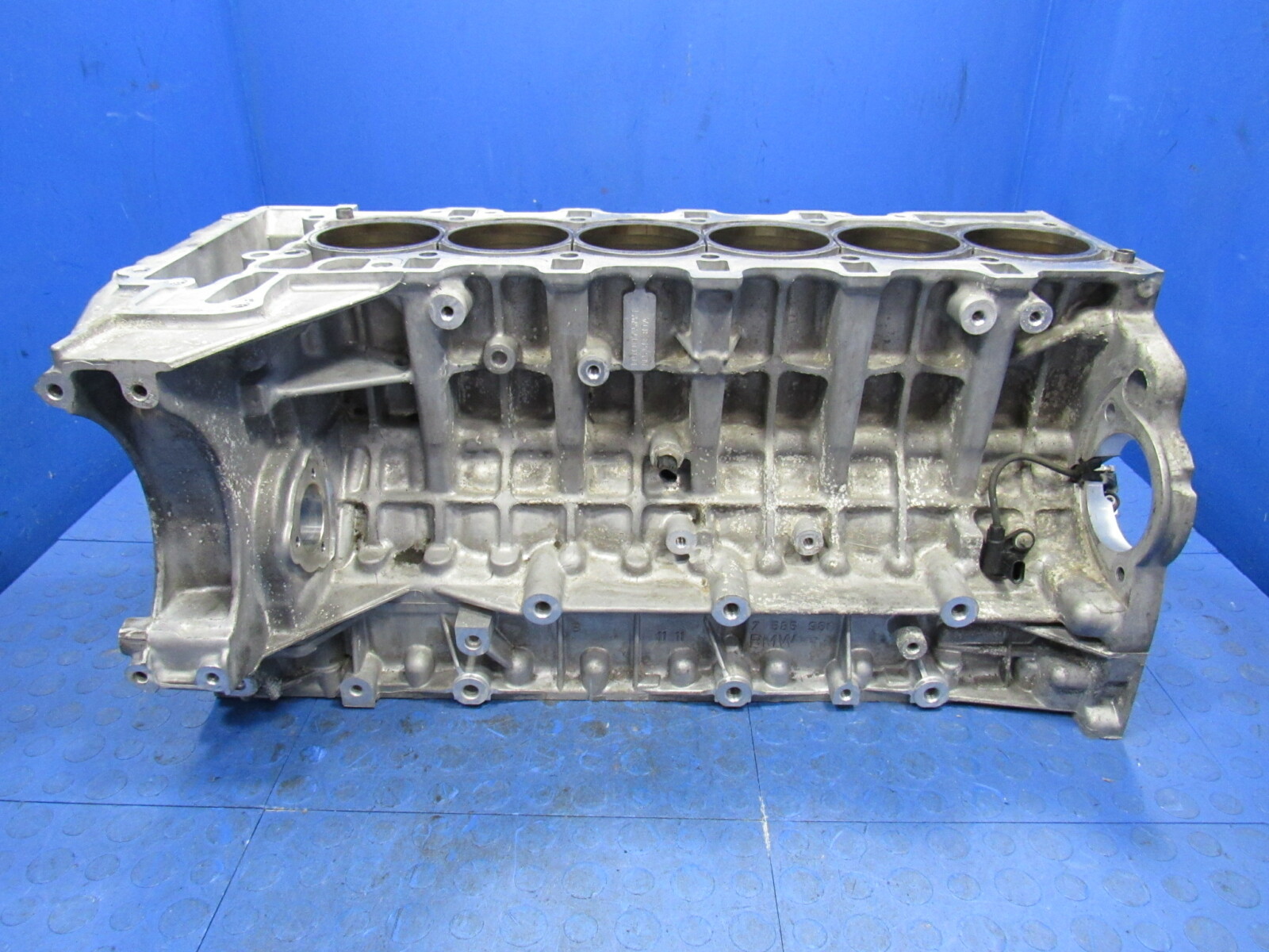 Bare engine block from a 2011 BMW X5. This block was cleaned and inspected after disassembly. All six cylinder bores measure out to standard bore (84mm). The cylinders have some light scratches and average wear in every cylinder, but do not have any large gouges, pitting or any visible structural damage. **As with any of our used engine parts, we recommend having this block checked by a professional machinist as it could need boring, honing, resurfacing or other repair**. All threaded and mounting holes are intact and undamaged. The main bearing journals appear to be in good condition, and when the engine was disassembled it had no spun main bearings. The main cap girdle is all attached and included, but does NOT include any of the aluminum girdle bolts. This block comes exactly as pictured. The photos are of the actual part you will receive. **Original equipment from the following vehicles with N55 3.0L engine and WITHOUT front oil pump drive tensioner access hole:** - **2011-2012 BMW 135i, 335i, and 535i** - **2012 BMW 640i** - **2011-2012 BMW X3, X5, and X6** **If your engine has an access hole for removing the oil pump drive tensioner assembly on the front of the block this will NOT work for you.** **No shipping outside the lower 48 states. No P.O. Boxes.**