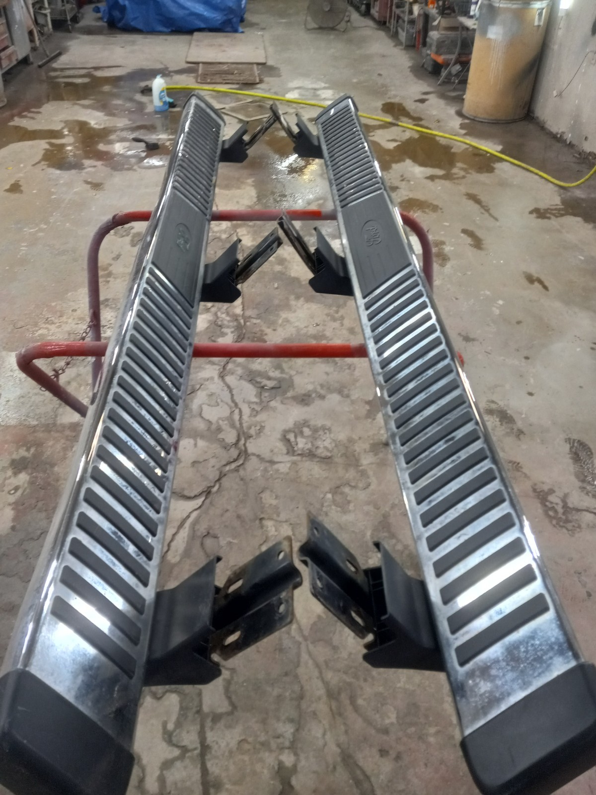 Nice driver quality used OEM Running Board Set (LH & RH) pulled from a 2015 Ford F250 Super Duty Crew Cab. Includes OEM mounting brackets and new mounting hardware. No deep scratches or scuffs Straight Overall some minor damage (dents and Chrome peel) as seen in pictures. No cracks in any of the plastic covers Parts sold as-is as pictured Fast and Free shipping! Will take brackets off boards to ship. Make offer!
