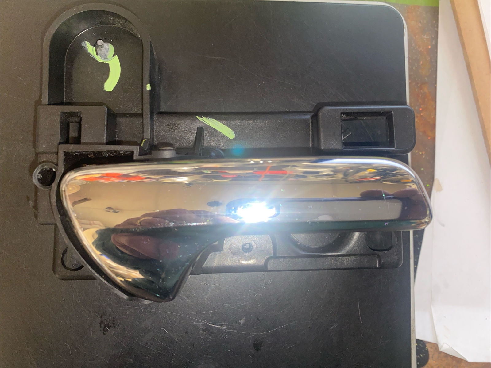 11-20 Dodge Journey, RH Rear Interior Chrome Door Handle, Part #937072, OEM Location: Building #1, backside of shelf by office